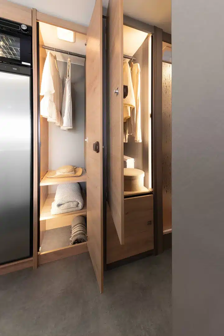 Large, comfortable and perfectly equipped – that’s the XL Family. With its blend of sleek white overhead locker doors, light wood decor and stylish anthracite upholstery, this motorhome evokes the ambience of a modern holiday apartment on wheels. At an incredible 209 cm, there is ample headroom for everyone – even with six people on board.