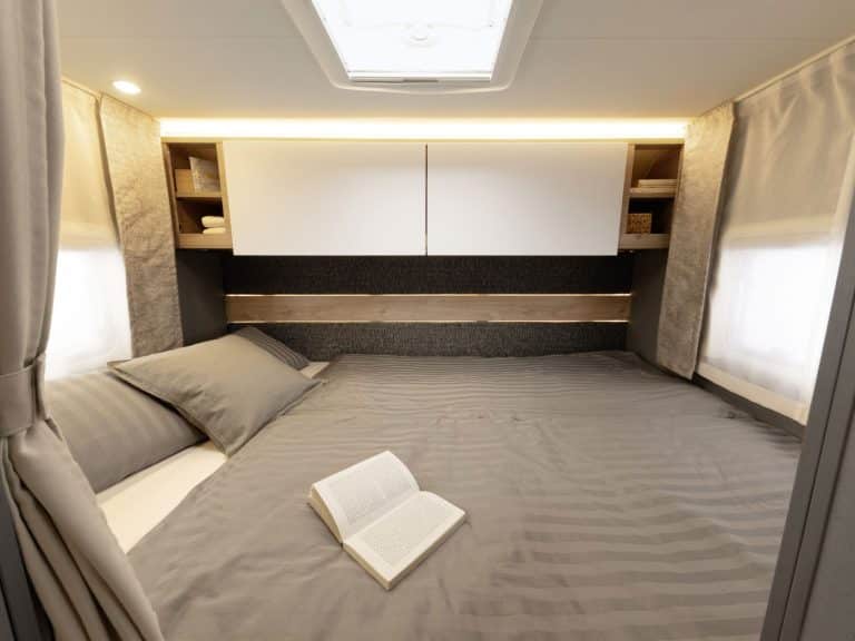 King size accommodations above the cab and in the back, with the lounge also converting to a double bed.